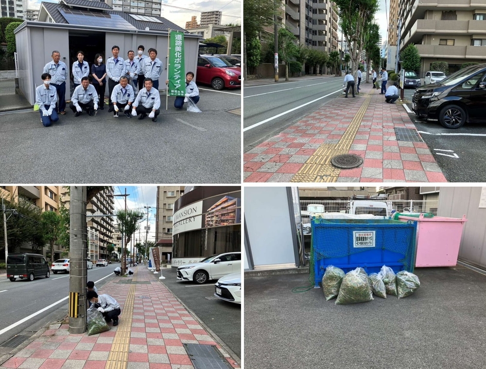 歩道や溝の除草、タバコの吸い殻や空き缶などを拾い掃除しました。