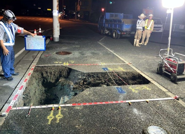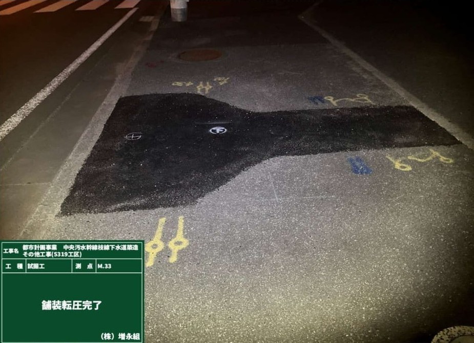 埋設物確認後、埋戻しをおこない、舗装転圧をして完了です。