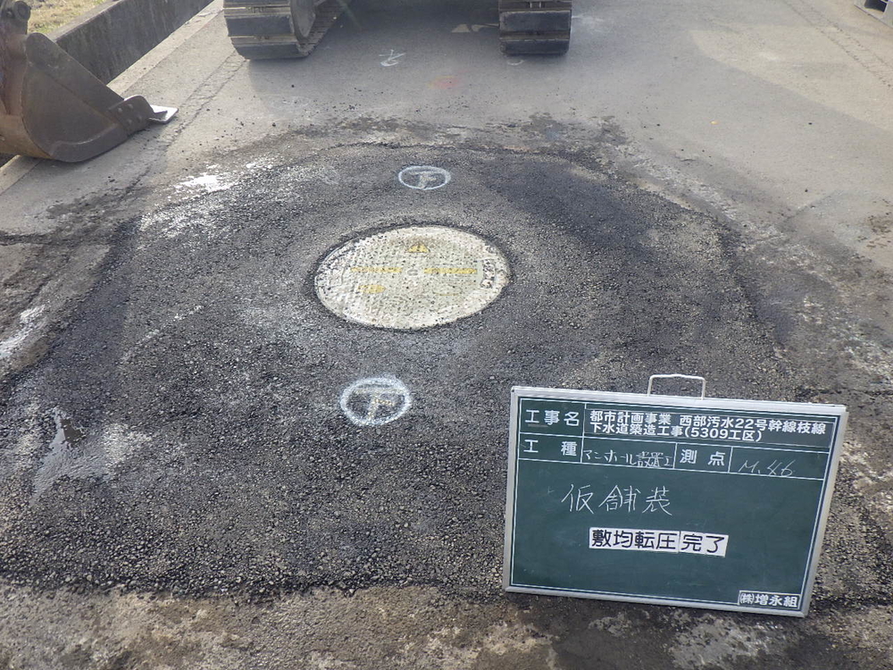 ・埋戻し後、仮舗装を行いマンホール設置完了