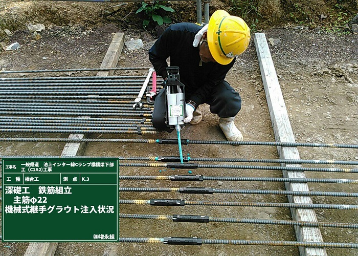 進捗写真④ 継いだ部分にグラウト材を注入して強度を増しています。